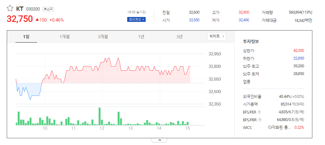 KT 주가 분석