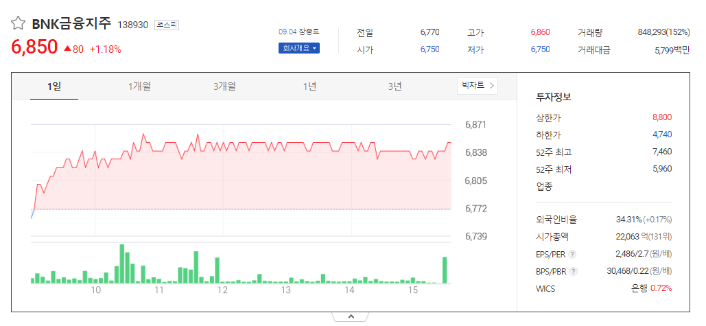 BNK금융지주 주가 분석