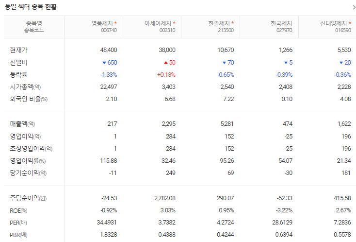 이 글에서는 영풍제지 주가 전망과 목표 주가, 기업 정보에 대해서 설명합니다. 주식 시장에서 중요한 것은 미래의 기업 가치를 예측하고 선제적으로 움직이는 것입니다. 투자할 종목을 고르기 전에 현재 기업의 현황과 데이터를 확인하는 것이 필요합니다. 영풍제지 주식의 주요 현황과 투자 정보를 확인하시고 주식 투자에 도움이 될 만한 정보들을 모아 놓았으니 투자 시 참고하시기 바랍니다..