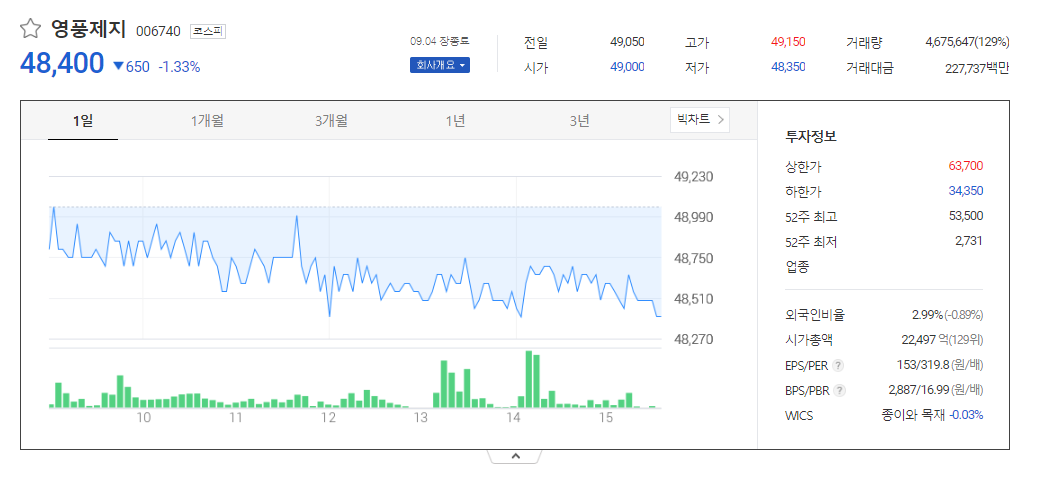 영풍제지 주가 분석