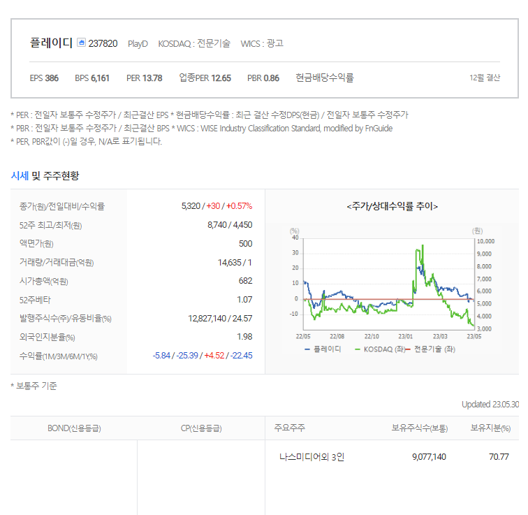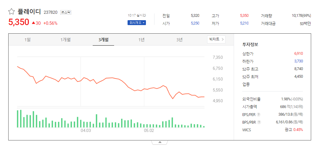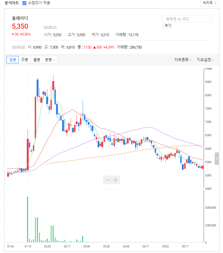 플레이디 주가 분석