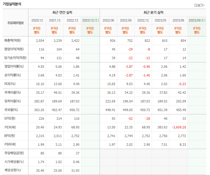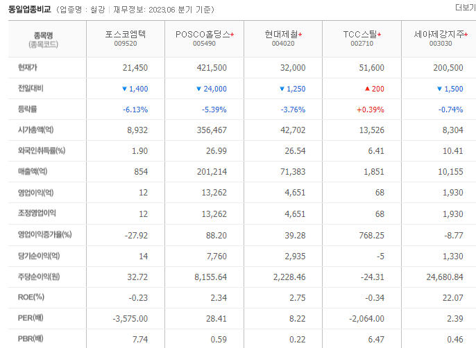 -2023년 6월 전년동기 대비 별도기준 매출액은 9.7% 감소, 영업이익은 71.3% 감소, 당기순이익은 62.6% 감소. 모회사인 포스코가 아르헨티나에 소유한 리튬호수의 가치가 부각되고 있으며, 2차 전지 관련주로 분류되고 있으나 직접적으로 영위하고 있는 리튬 관련 사업은 없음. 환경부와 협력하여 폐알류미늄캔 재활용 사업 구축. 제철소 정상화로 실적 회복 예상.