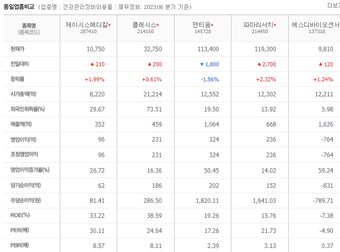 제이시스메디칼 현재 주가는 10,540원이며 전일 대비 -12.39원의 모습을 보이고 있습니다. 제이시스메디칼의 주주현황을 살펴보면 강동환(외 6인)이 지분 29.41%를 소유하고 있습니다. 제이시스메디칼는 의료 장비 및 서비스 기업으로 장중 기준으로 주가는 10,540원 입니다. 제이시스메디칼 시가 총액은 8220억 원이며 발행 주식수는 29.67주 입니다. 외국인 보유 비중은 330,814% 이며 장중 거래량은 76,469,405를 기록했습니다. 매출액은 643억 원, 영업이익은 340억 원을 달성했습니다. EPS는 432원이며 제이시스메디칼 주식 배당수익률은 0.72% 입니다.
