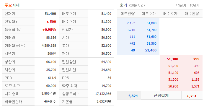 이엠텍 현재 주가는 50,900원이며 전일 대비 원의 모습을 보이고 있습니다. 이엠텍의 주주현황을 살펴보면 정승규(외 3인)이 지분 14.98%를 소유하고 있습니다. 이엠텍는 휴대폰 및 관련부품 기업으로 장중 기준으로 주가는 50,900원 입니다. 이엠텍 시가 총액은 8806억 원이며 발행 주식수는 2.71주 입니다. 외국인 보유 비중은 177,772% 이며 장중 거래량은 17,132,936를 기록했습니다. 매출액은 1,355억 원, 영업이익은 339억 원을 달성했습니다. 이엠텍 주식 배당수익률은 0.70% 입니다.