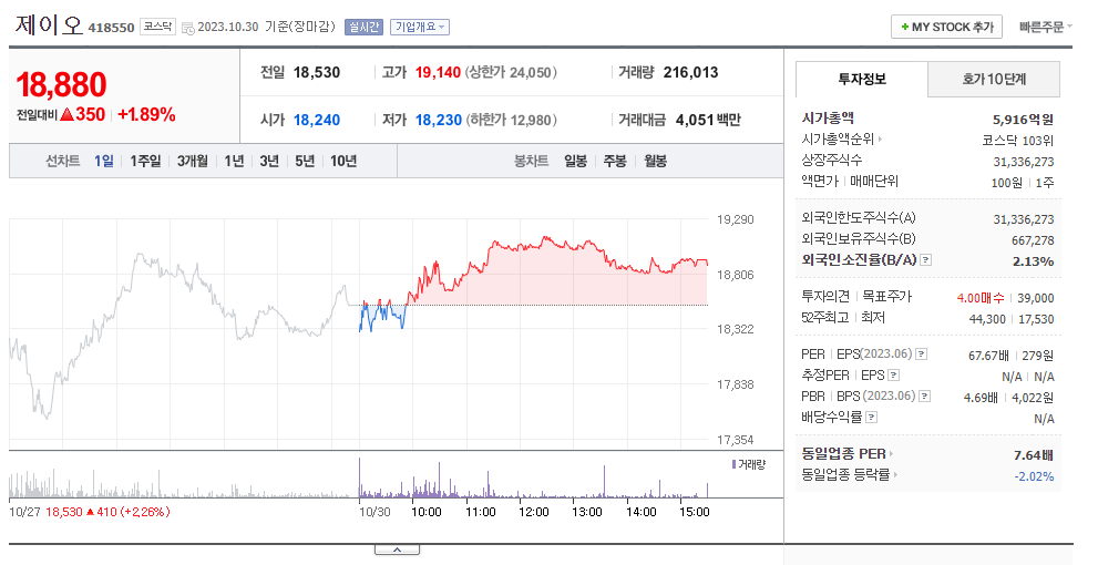 이 글에서는 제이오 주가 전망과 목표 주가, 기업 정보에 대해서 설명합니다. 주식 시장에서 중요한 것은 미래의 기업 가치를 예측하고 선제적으로 움직이는 것입니다. 투자할 종목을 고르기 전에 현재 기업의 현황과 데이터를 확인하는 것이 필요합니다. 제이오 주식의 주요 현황과 투자 정보를 확인하시고 주식 투자에 유용한 자료들을 정리하여 제공하오니 효율적인 투자를 해보세요..