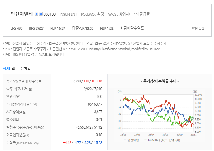 -2023년 6월 전년동기 대비 연결기준 매출액은 5.9% 감소, 영업이익은 16.3% 감소, 당기순이익은 15.6% 감소. 인선기업, 인선모터스 등 주요 연결 종속회사 매출이 전년 동기 대비 줄어들며 외형이 축소됨. 인건비 절감 노력에도 불구하고 영업이익이 감소함. 기존 폐기물 처리 분야를 넘어 전기차 폐배터리 등 자동차재활용 사업 전반에 걸친 영역으로 연구개발 분야를 확대하고 있음.