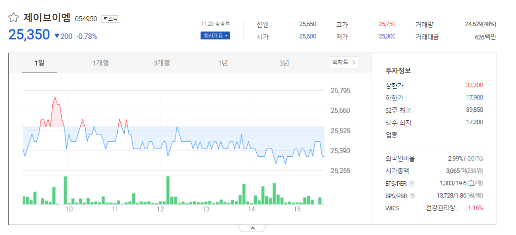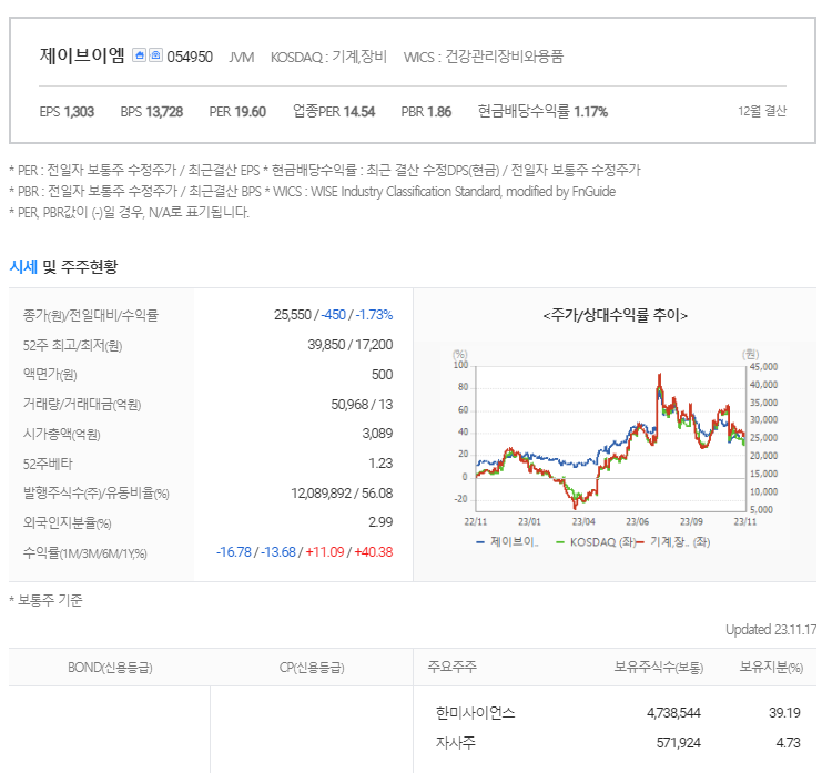 제이브이엠 주가 분석