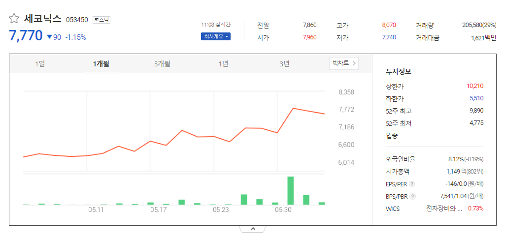 세코닉스 주가 분석
