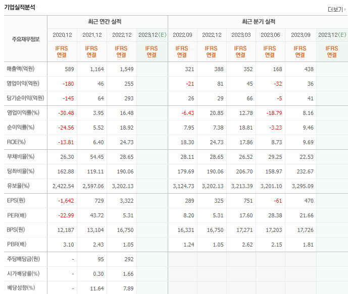-2023년 6월 전년동기 대비 연결기준 매출액은 38.1% 감소, 영업이익은 93.1% 감소, 당기순이익은 74.5% 감소. 매출이 쪼그라들었고 판매관리비는 오히려 늘면서 수익성에 부정적 영향을 미친 것으로 풀이됨. 법인세 비용이 늘어난 점도 당기순익 등에 부정적 영향. ToF 3D 카메라와 복강경 수술 로봇을 개발하여 신사업 확장에 박차를 가하고 있으며, 해외진출을 본격화 할 것임.