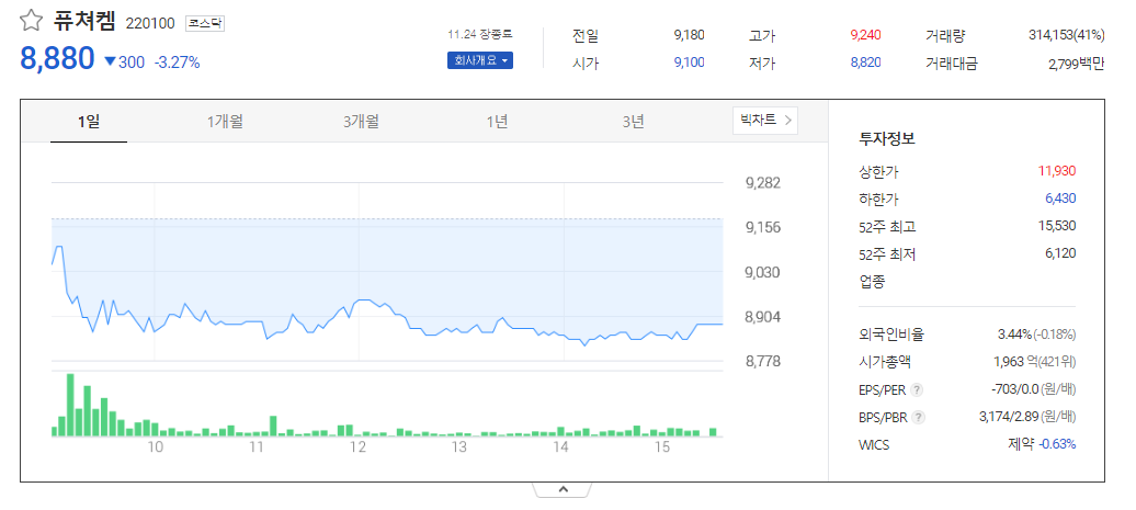 퓨쳐켐 주가 분석