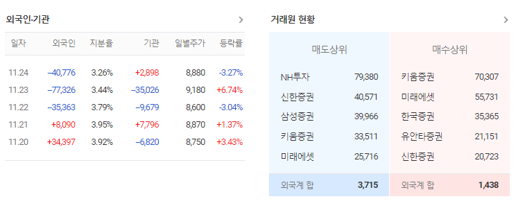 그 때문에 개인 투자자는 기관이나 외국인 세력을 따르며, 약한 세력 속에서도 어떤 것을 매수하고 매도해 이익을 냅니다. 최근 흐름은 외국인 매수보다 기관 투자자를 따르는 것이 많으며, 외국인의 매수가 불확실하고 개인의 단기 거래가 기관과 유사한 성향 때문입니다.