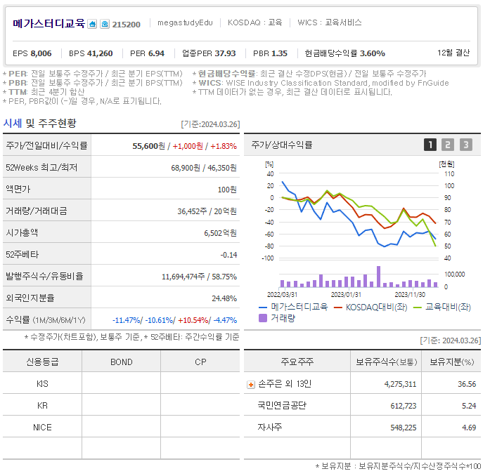 이 글에서는 메가스터디교육 주가 전망과 목표 주가, 기업 정보에 대해서 설명합니다. 주식 거래에서 중요한 점은 미래 기업 가치를 예상하며 선제적으로 움직이는 것입니다. 투자할 종목을 고르기 전에 현재 기업 상황과 지표를 살펴야 합니다. 메가스터디교육 주식의 주요 현황과 투자 정보를 확인하시고 주식 투자에 유용한 자료들을 정리하여 제공하오니 효율적인 투자를 해보세요..