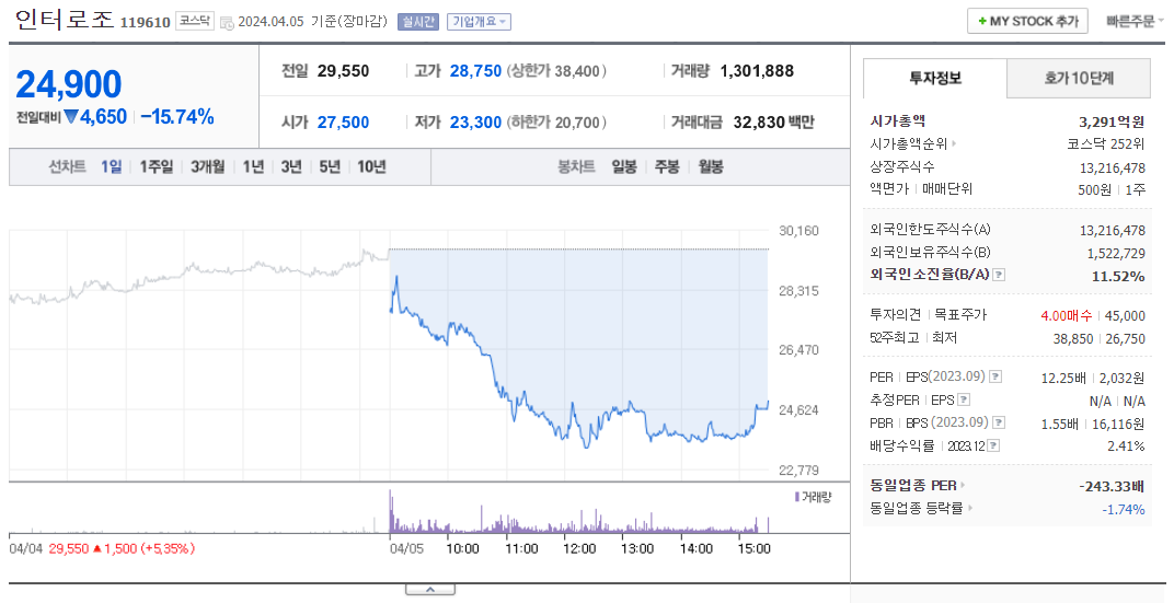 이 글에서는 인터로조 주가 전망과 목표 주가, 기업 정보에 대해서 설명합니다. 주식 시장에서 핵심은 미래의 기업 가치를 예측하고 선제적으로 움직이는 것입니다. 투자할 종목을 선택하기 전에 현재 기업의 현황과 데이터를 확인하는 것이 필요합니다. 인터로조 주식의 주요 현황과 투자 정보를 확인하시고 주식 투자에 유용한 정보들을 한 곳에 정리해두었으니 투자 전에 확인하시기 바랍니다..