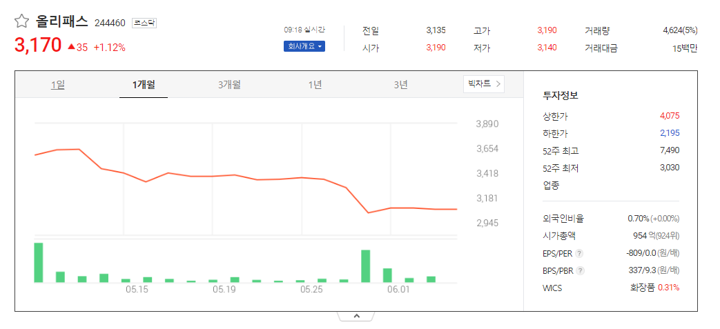 이 글에서는 올리패스 주가 전망과 목표 주가, 기업 정보에 대해서 설명합니다. 주식에 투자하기 전에는 기업 주가 정보와 재무 상태를 살펴보는 것이 필요합니다. 올리패스 주식의 주요 현황과 투자 정보를 확인하시고 지금 시장 흐름을 살펴보겠습니다.