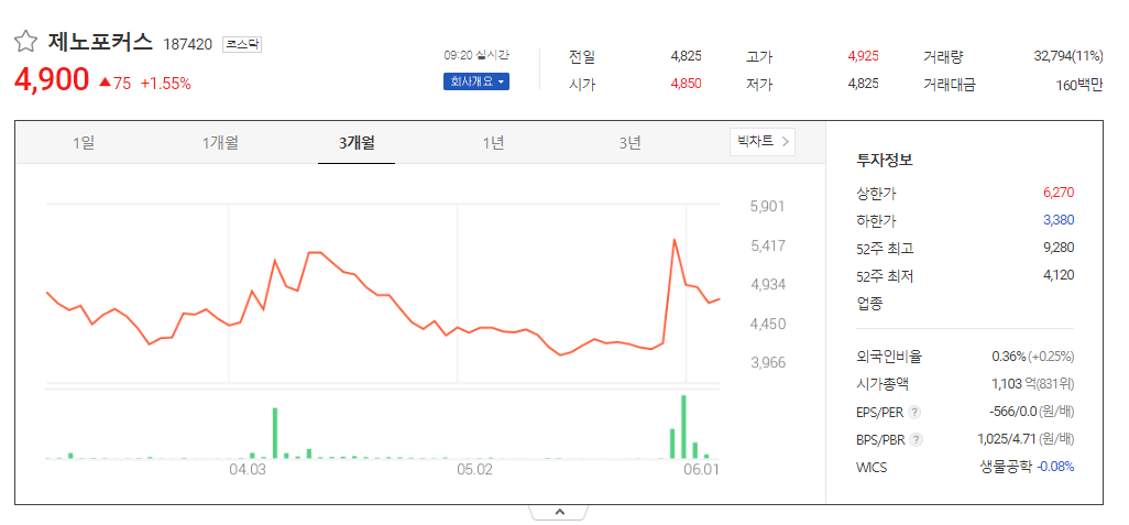 제노포커스 주가 분석