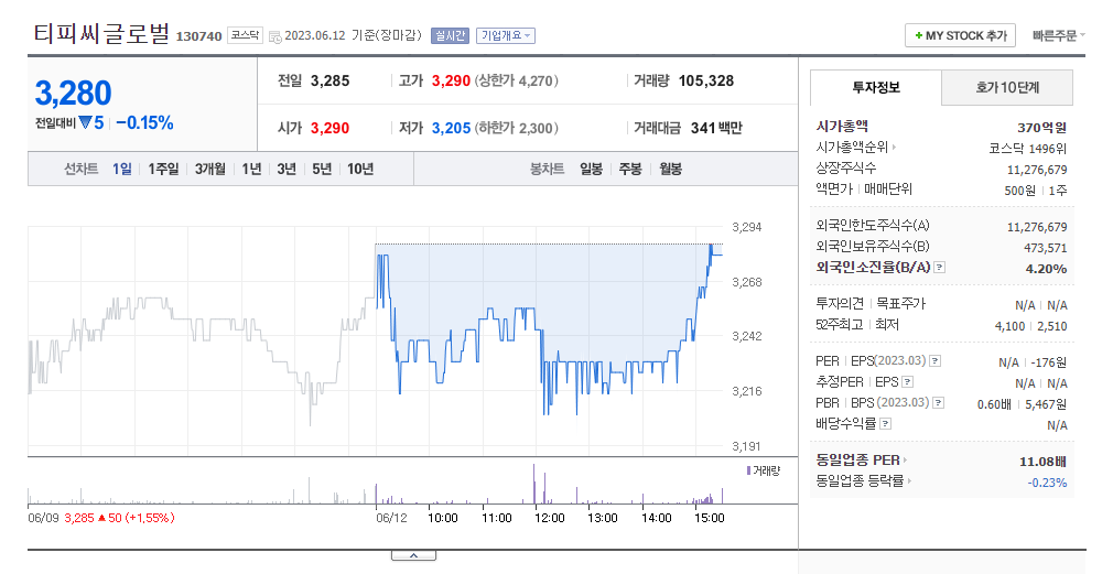 티피씨글로벌 주가 분석