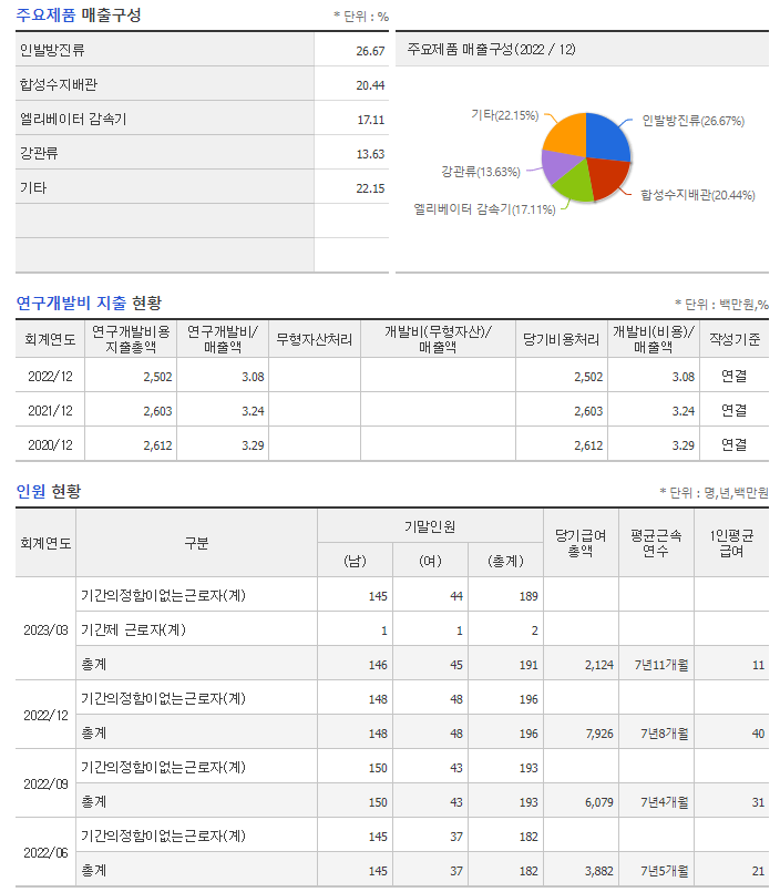 -동사는 1998년 12월 인발튜브, 연료/냉각수 튜브 등 자동차 부품을 제조판매할 목적으로 설립됨. 2011년 2월 8일 코스닥시장에 상장되어 매매가 개시됨. 동사는 자동차부품, 감속기, 합성수지배관 제조업을 주요 사업으로 영위함. 정밀강관, 방진부품, 연료주입계통, 냉각계통, 엘리베이터/ 에스컬레이터용 권상기(감속기), 동기모터, 산업용 감속기, 로봇감속기 등을 제조하여 판매함.