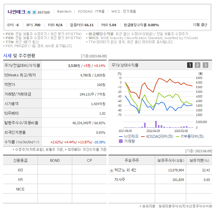이 글에서는 나인테크 주가 전망과 목표 주가, 기업 정보에 대해서 설명합니다. 주식 투자에 앞서 기업 주가와 재무 현황표에 대해서 알아보는 것이 필요합니다. 나인테크 주식의 주요 현황과 투자 정보를 확인하시고 현재 시장 현황을 살펴보겠습니다.