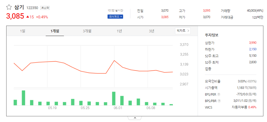 이 글에서는 삼기 주가 전망과 목표 주가, 기업 정보에 대해서 설명합니다. 주식을 제대로 하기에 앞서 정확한 기업 정보와 주가 현황에 대해 살펴보는 것이 필요합니다. 삼기 주식의 주요 현황과 투자 정보를 확인하시고 주가 흐름을 파악해보겠습니다.