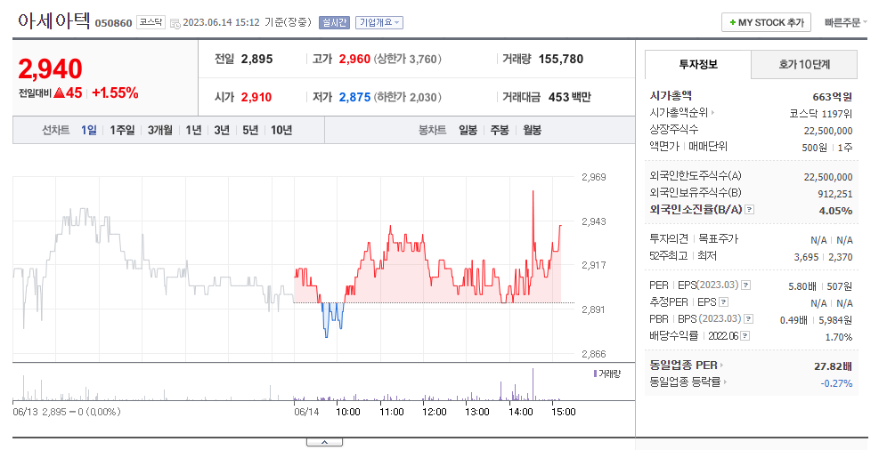 이 글에서는 아세아텍 주가 전망과 목표 주가, 기업 정보에 대해서 설명합니다. 주식에 투자하기 전에는 기업의 상태와 주가 정보에 대해서 살펴보는 것이 필요합니다. 아세아텍 주식의 주요 현황과 투자 정보를 확인하시고 현재 시장 흐름을 알아보겠습니다.