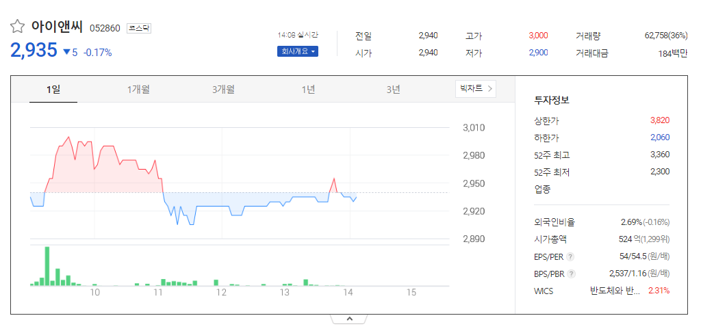 이 글에서는 아이앤씨 주가 전망과 목표 주가, 기업 정보에 대해서 설명합니다. 주식을 알아보기 전에 기업 현황고 현재 시장 흐름에 대해서 살펴보는 것이 굉장히 중요합니다. 아이앤씨 주식의 주요 현황과 투자 정보를 확인하시고 현재 시장 현황을 살펴보겠습니다.