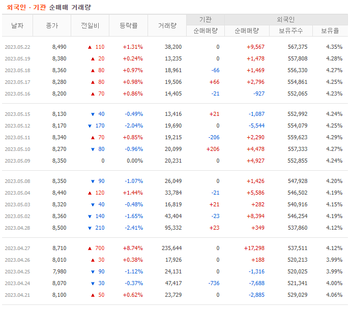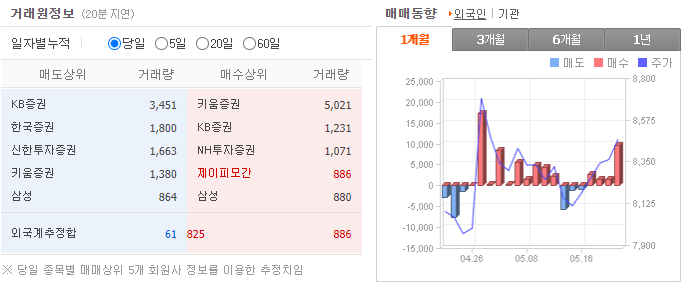 가장 좋은 경우는 기관과 외국인 모두 매수하는 쌍끌이 주식을 공략하는 방법입니다. 큰 세력 두개가 동시에 매수한다는 뜻은 그만큼 좋은 종목이라는 뜻입니다. 해당 종목의 주가 전망을 분석하려면 먼저 기업체를 분석하고 시장에서 흐름을 찾아봐야 합니다. 거기에 외국인과 기관 매수 매도까지 찾아본다면 투자 성공 확률을 올리는 것이 가능합니다.
