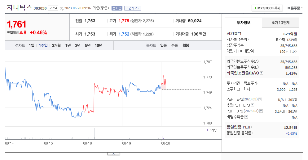 지니틱스 주가 분석
