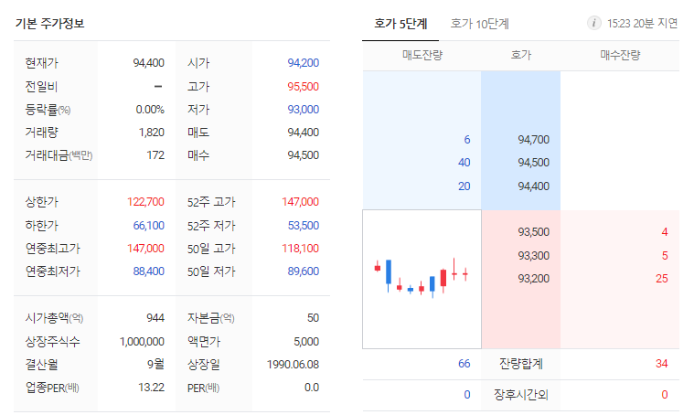 금비 현재 주가는 94,400원이며 전일 대비 -700원의 모습을 보이고 있습니다. 금비의 주주현황을 살펴보면 고기영(외 10인)이 지분 56.77%를 소유하고 있습니다. 금비는 용기 및 포장 기업으로 장중 기준으로 주가는 94,400원 입니다. 삼성전자의 시가 총액은 948억 원이며 발행 주식수는 0.71주 입니다. 외국인 보유 비중은 3,420% 이며 장중 거래량은 1,000,000를 기록했습니다. 매출액은 1,216억 원, 영업이익은 -0억 원을 달성했습니다.금비 주식 배당수익률은 -2.82% 입니다.