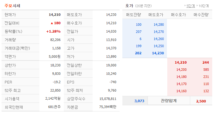 현대비앤지스틸 현재 주가는 14,030원이며 전일 대비 -590원의 모습을 보이고 있습니다. 현대비앤지스틸의 주주현황을 살펴보면 현대제철(외 3인)이 지분 45.98%를 소유하고 있습니다. 현대비앤지스틸는 금속 및 광물 기업으로 장중 기준으로 주가는 14,030원 입니다. 시가 총액은 2094억 원이며 발행 주식수는 4.52주 입니다. 외국인 보유 비중은 245,227% 이며 장중 거래량은 15,078,811를 기록했습니다. 매출액은 2,803억 원, 영업이익은 335억 원을 달성했습니다. 현대비앤지스틸 주식 배당수익률은 8.34% 입니다.
